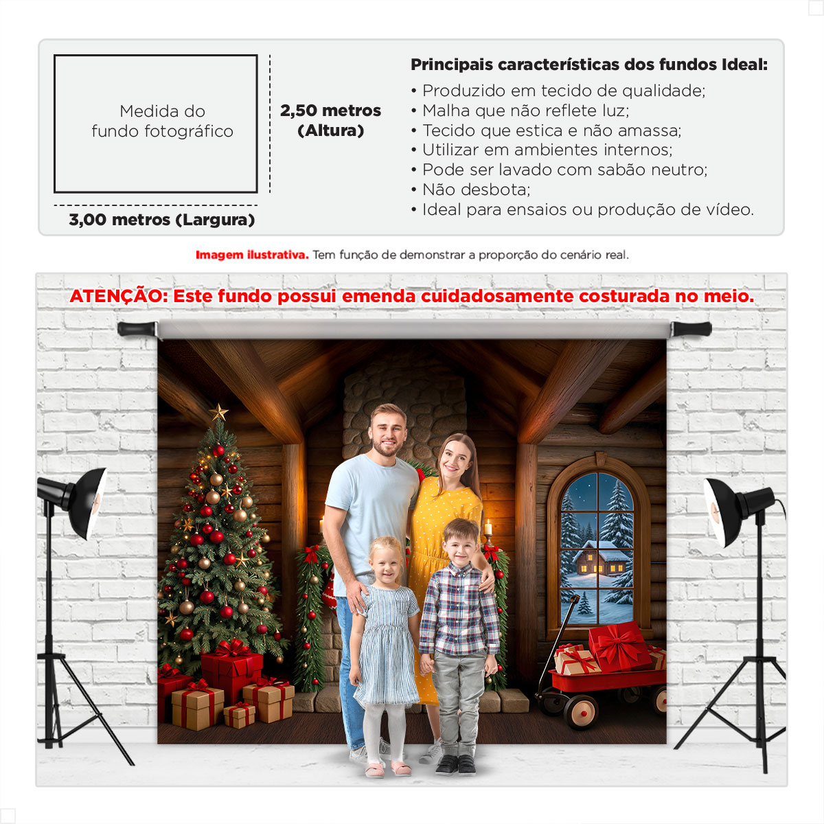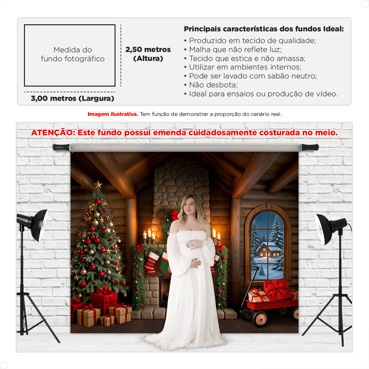É noite de Natal e a cabana de madeira respira aconchego. A lareira de pedras, espalhando luz quente pelas paredes, enquanto o pinheiro vestido com bolas vermelhas e douradas, estrelas e luzinhas brilha suavemente. Pela janela arqueada, a paisagem nevada emoldura uma casa iluminada ao longe. Presentes bem-embalados se acumulam ao pé da árvore e meias penduradas aguardam surpresas. O FNT-822 transforma qualquer sessão em uma cena clássica e acolhedora, perfeita para memórias inesquecíveis.